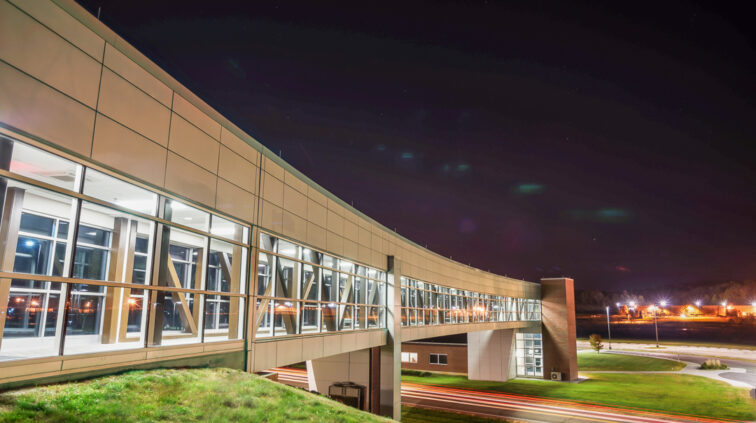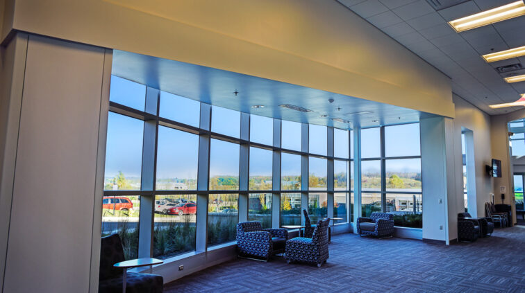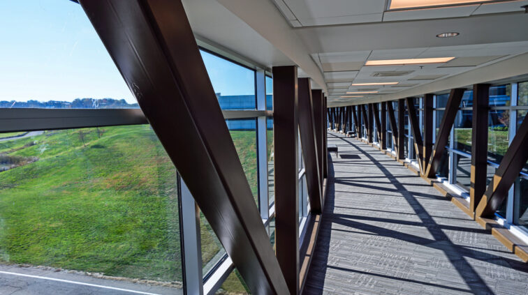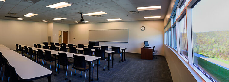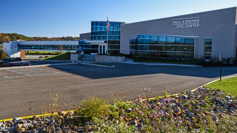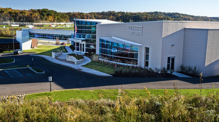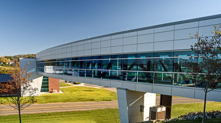The Cambridge EPIC Center is a new 37,000 SF, one-story facility on the Zane State campus in Cambridge, Ohio. It houses state-of-the-art classrooms, laboratories, community, and academic offices. An enclosed, 200’-long pedestrian bridge spanning Brick Church Road was designed to connect this new building with the existing Willett-Pratt Training Center. Another unique feature of the EPIC Center includes a wind turbine court. The building achieved LEED Gold certification by the USGBC.