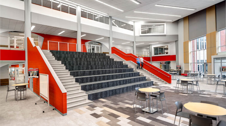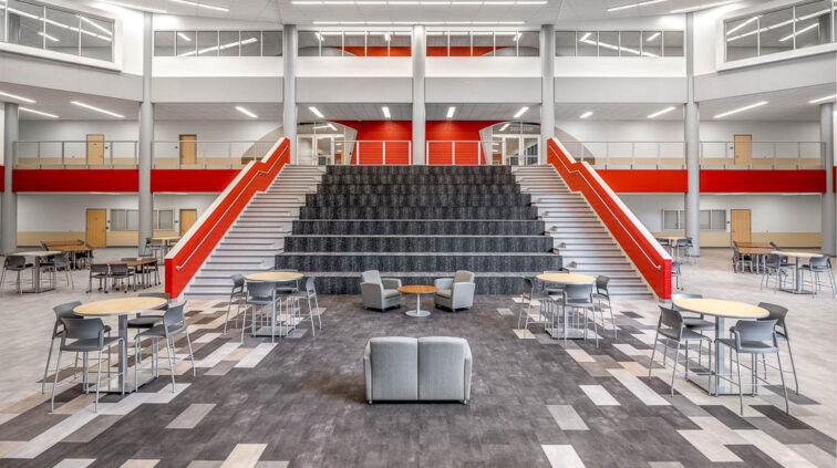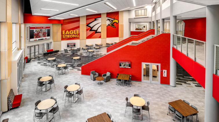 This new 302,310 SF high school included highlights such as a new theater with a catwalk, orchestra pit, green rooms, a scene shop, an academic common area to accommodate small group gatherings and ample group learning opportunities in an open-concept space, a stadium, and a competition gym with an elevated indoor running track. The new Prairie Run Elementary School featured extended learning areas, which provided space for different activities outside the classrooms. As part of this project, we also designed the school district’s storm shelters.