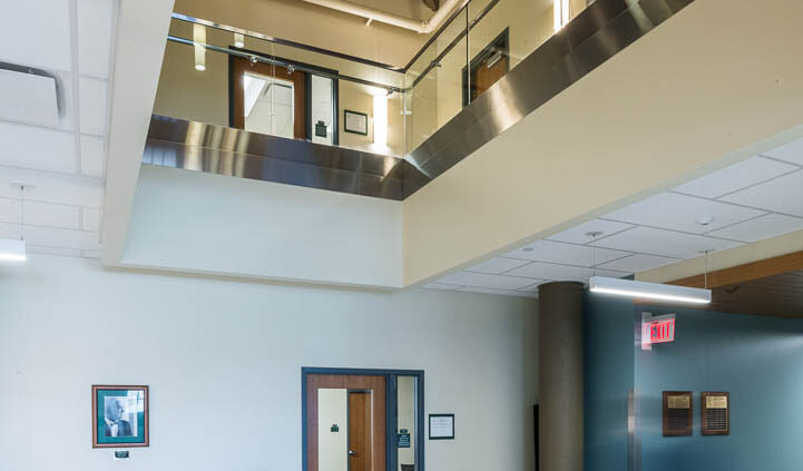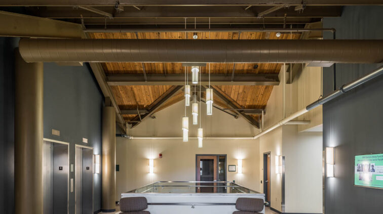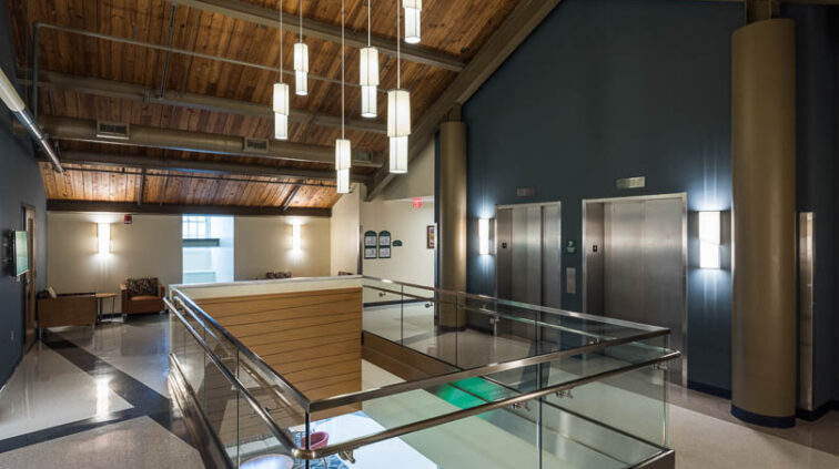 As the structural engineer, the SMBH team faced several challenges with this renovation project. Because the original building was constructed with much lower story heights than those required for modern buildings, we designed a structural system for the floor in the addition that matched the existing and new floor levels while allowing space above the ceiling for electrical, plumbing, and ductwork. A two-way flat plate concrete slab system was chosen for the floors as an economical way to meet the project requirements.